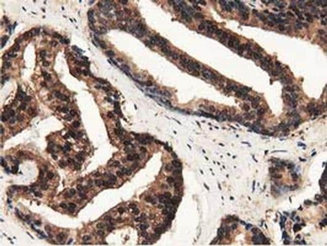 - Immunohistochemical analysis of GSTT2 in paraffin-embedded carcinoma of human prostate tissue using a GSTT2 monoclonal antibody (Product # MA5-25270) at a dilution of 1:150.