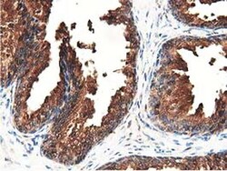 - Immunohistochemical analysis of GSTT2 in paraffin-embedded human prostate tissue using a GSTT2 monoclonal antibody (Product # MA5-25270) at a dilution of 1:150.