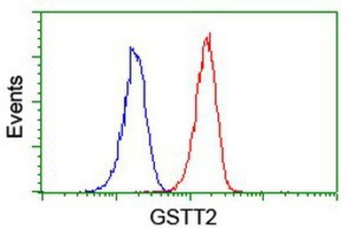 - Flow Cytometry: GSTT2 Antibody (3B6) [NBP2-03126] - Analysis of Jurkat cells, using anti-GSTT2 antibody, (Red), compared to a nonspecific negative control antibody (Blue).