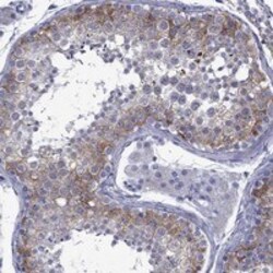 - Immunohistochemical analysis of EPPIN-WFDC6 in human testis using EPPIN-WFDC6 Polyclonal Antibody (Product # PA5-140325) shows strong cytoplasmic positivity in cells in seminiferous ducts.