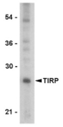 - Western blot analysis of TIRP in PC-3 cell lysate with TIRP antibody at 1 ug/ml.
