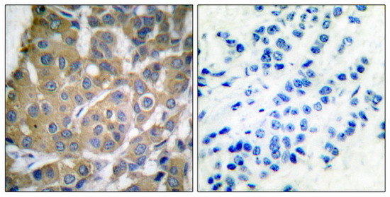 - Immunohistochemical analysis of paraffin-embedded human breast carcinoma tissue using Cox2 antibody. The picture on the right is treated with the synthesized peptide.