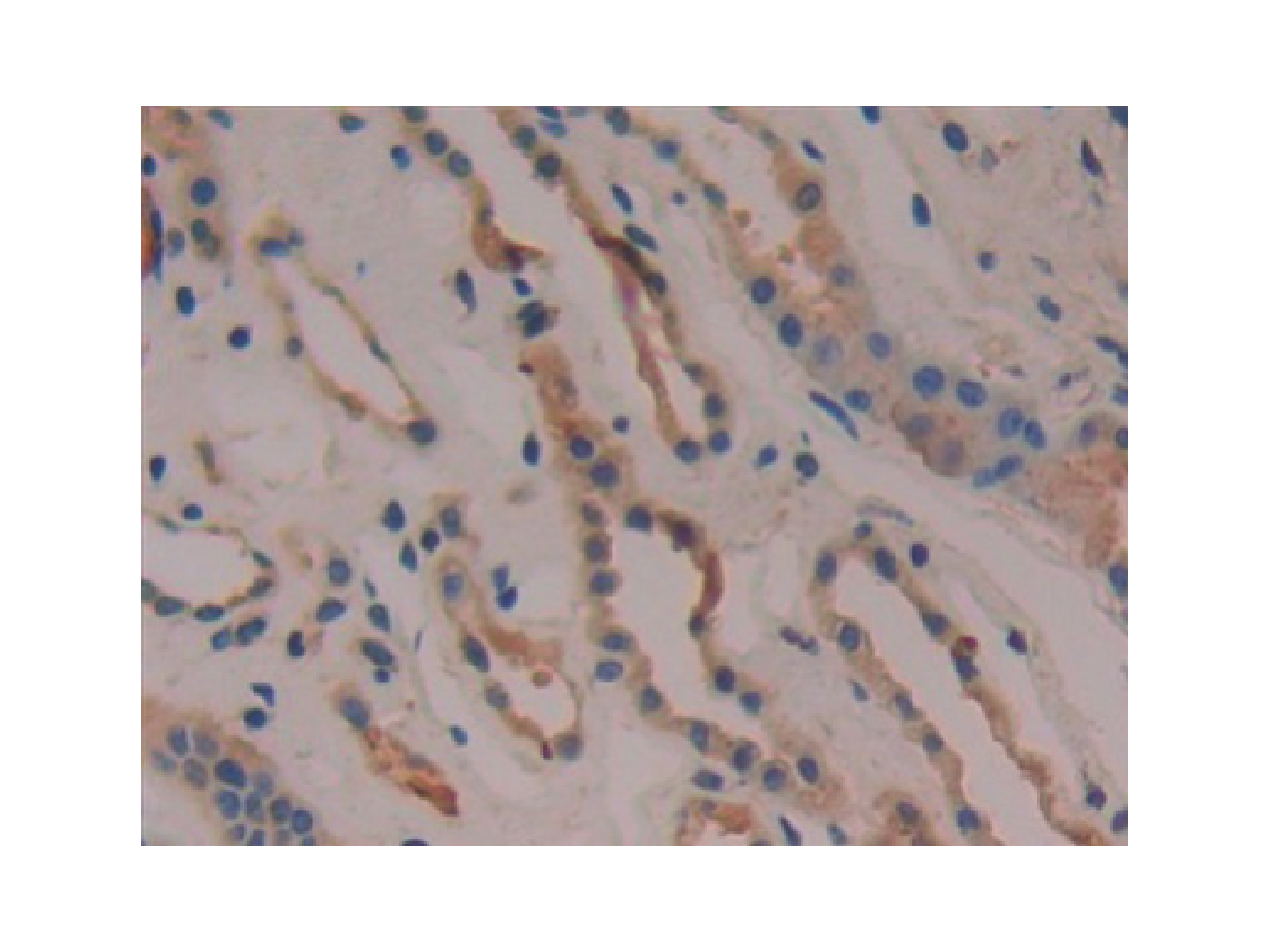 - COX2 Antibody (Ab097432) - IHC DAB staining on IHC Samples: Human Kidney Tissue Primary Ab: 10 µg/mL COX2 Antibody (Ab097432) Second Ab: 2 µg/mL HRP-Linked Caprine Anti-Rabbit IgG Polyclonal Antibody.