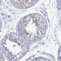 - Immunohistochemistry: FAM183A Antibody [NBP2-33391] - Immunohistochemical staining of human testis shows cytoplasmic positivity in cells in seminiferous ducts.