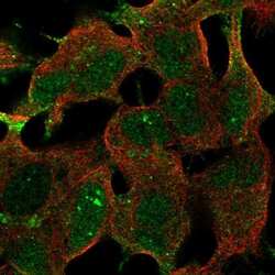 - Immunofluorescent staining of FAM163B in human cell line SH-SY5Y shows localization to nuclear bodies, plasma membrane and cytosol. Samples were probed using a FAM163B Polyclonal Antibody (Product # PA5-66912).