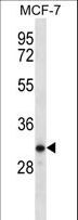 - TESSP1 Antibody western blot of MCF-7 cell line lysates (35 ug/lane). The TESSP1 antibody detected the TESSP1 protein (arrow).