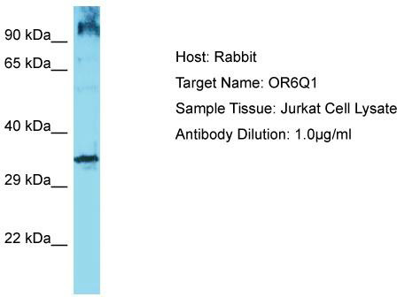 - Host: Rabbit; Target Name: OR6Q1; Sample Tissue: Jurkat Whole Cell lysates; Antibody Dilution: 1.0ug/ml