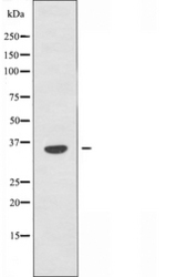 - Western blot analysis of extracts of Jurkat cells using OR6Q1 antibody.