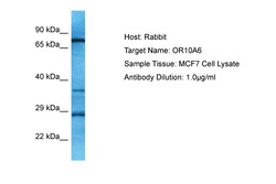 - Host: RabbitTarget Name: OR10A6Sample Tissue: MCF7 Whole Cell lysatesAntibody Dilution: 1.0µg/ml