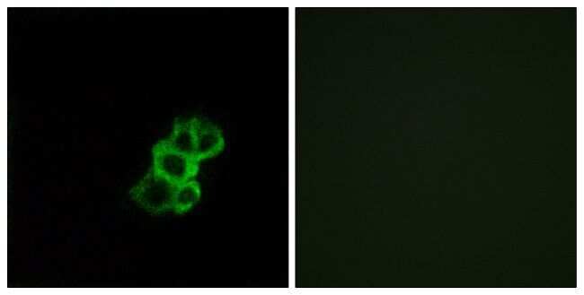 - Immunofluorescent analysis of OR8B4 in MCF-7 cells using an OR8B4 polyclonal antibody (Product # PA5-39858).