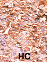 - "Formalin-fixed and paraffin-embedded human cancer tissue reacted with the primary antibody, which was peroxidase-conjugated to the secondary antibody, followed by AEC staining. This data demonstrates the use of this antibody for immunohistochemistry; clinical relevance has not been evaluated. BC = breast carcinoma; HC = hepatocarcinoma."