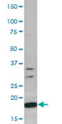- Western blot analysis of HIST1H3B (phospho S10) polyclonal antibody (Cat # PAB0481) in CEM cell lysate (35 ug/lane). Phospho-HIST1H3B-S10 (arrow) was detected using the purified polyclonal antibody.