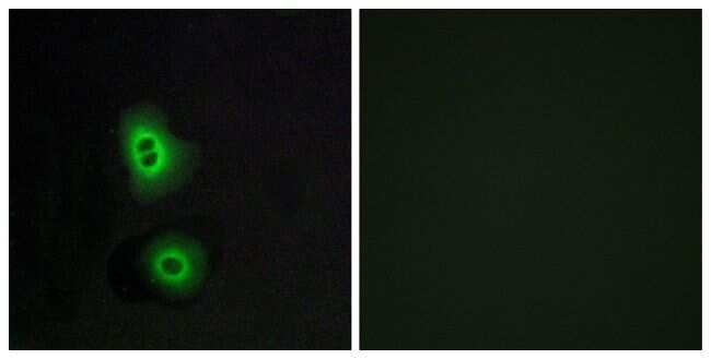 - Immunofluorescent analysis of OR4C16 in A549 cells using an OR4C16 polyclonal antibody (Product # PA5-38234).