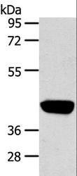 - Western blot analysis of Hepg2 cell, using PRSS50 Polyclonal Antibody at dilution of 1:450.