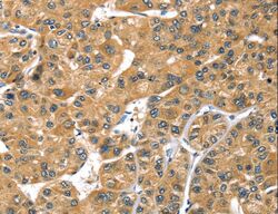 - Immunohistochemistry of paraffin-embedded Human liver cancer using PRSS50 Polyclonal Antibody at dilution of 1:30.