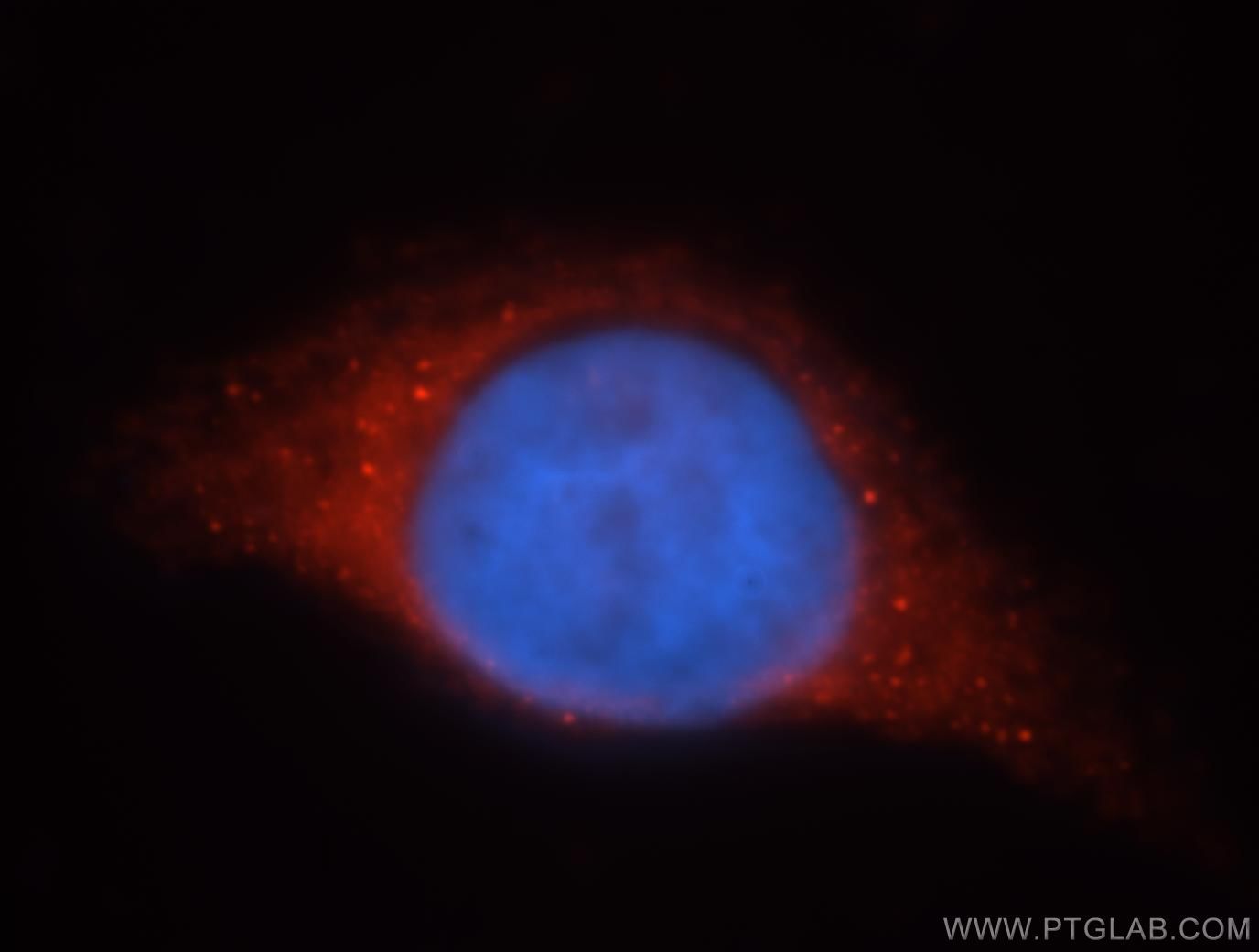 - Immunofluorescent analysis of MCF-7 cells, using GSR antibody 18257-1-AP at 1:25 dilution and Rhodamine-labeled goat anti-rabbit IgG (red).Blue pseudocolor = DAPI (fluorescent DNA dye).