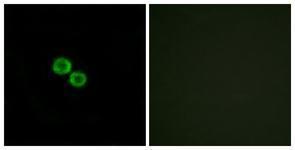 - Immunofluorescence analysis of HuvEc cells, using OR8K3 Antibody. The picture on the right is treated with the synthesized peptide.