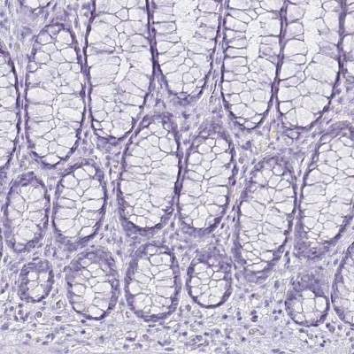- Immunohistochemistry-Paraffin: CCDC39 Antibody [NBP2-33999] - Staining of human rectum shows no positivity in glandular cells as expected.