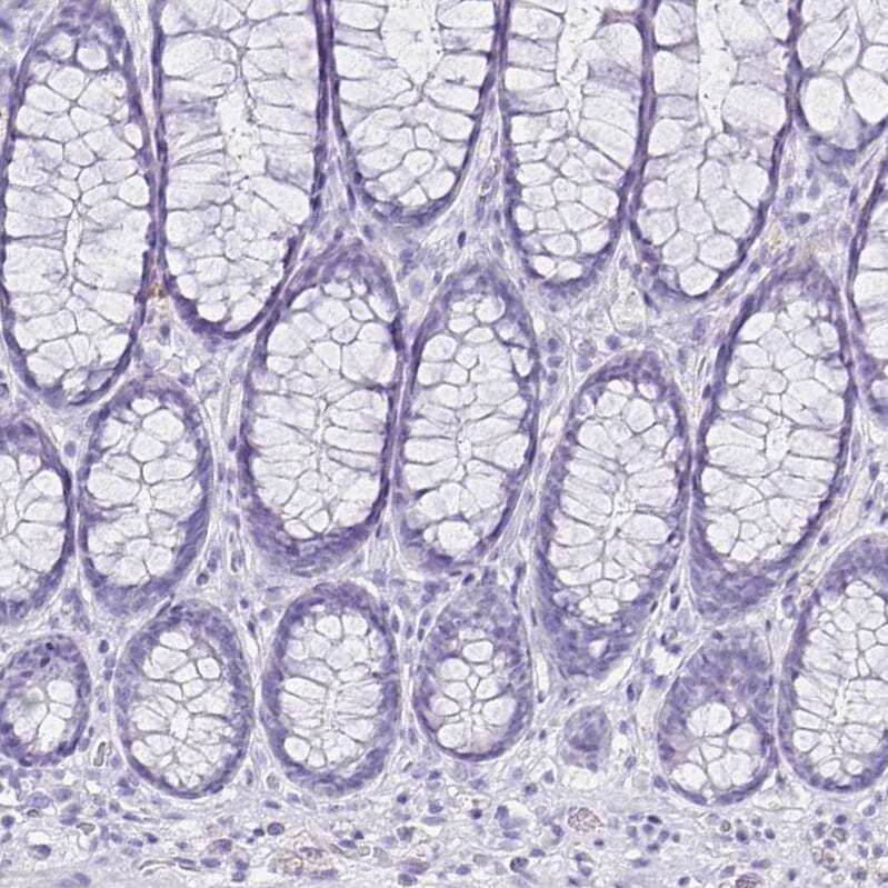 - Immunohistochemical staining of CCDC39 in human rectum using CCDC39 Polyclonal Antibody (Product # PA5-57243) shows no positivity in glandular cells as expected.