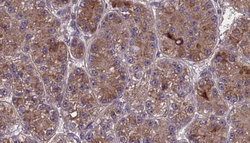 - 1:100 staining human liver carcinoma tissues by IHC-P. The sample was formaldehyde fixed and a heat mediated antigen retrieval step in citrate buffer was performed. The sample was then blocked and incubated with the antibody for 1.5 hours at 22°C. An HRP conjugated goat anti-rabbit antibody was used as the secondary.