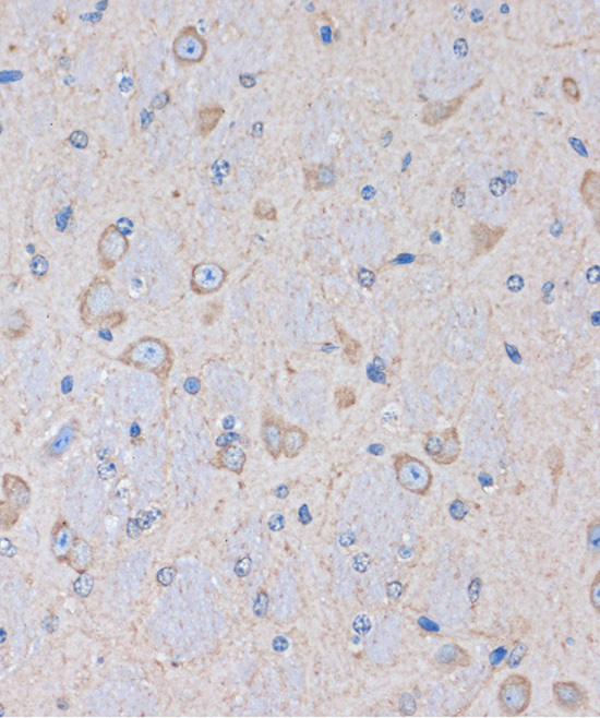 - Immunohistochemistry of paraffin-embedded mouse brain using OR2S2 rabbit polyclonal antibody (STJ118576) at dilution of 1:100 (40x lens).