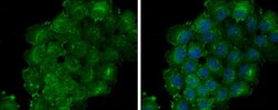 - Immunocytochemistry-Immunofluorescence analysis of Thrombomodulin was performed in A431 cells fixed in 4% paraformaldehyde at RT for 15 min. Green: Thrombomodulin Polyclonal Antibody (Product # PA5-21924) diluted at 1:200. Blue: Hoechst 33342 staining.