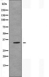 - Western blot analysis of extracts of MCF-7 cells using OR2T11 antibody.