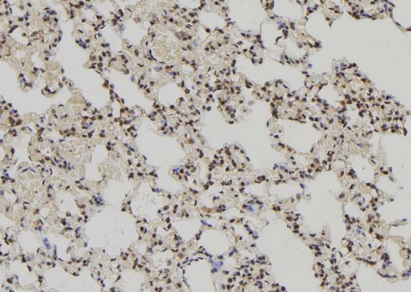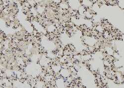 - Immunohistochemistry analysis of paraffin-embedded PPP1R2P3 in rat lung tissue. Antigen retrieval was performed using citrate buffer. Samples were blocked with blocking buffer (1.5 hr, 22°C), incubated with PPP1R2P3 polyclonal antibody (Product # PA5-104041) using a dilution of 1:100 (1.5 hr, 22°C), followed by HRP conjugated goat anti-rabbit.
