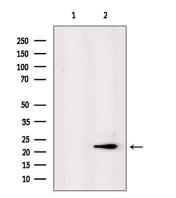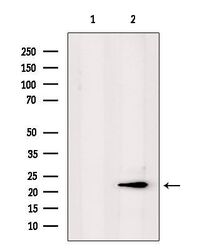 - Western blot analysis of PPP1R2P3 in mouse lung (Lane 1: treated with blocking peptide). Samples were incubated with PPP1R2P3 polyclonal antibody (Product # PA5-104041).