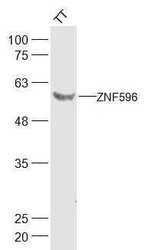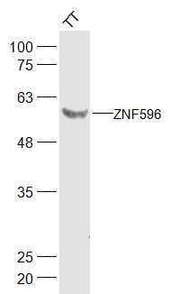 - TT cell lysates probed with ZNF596 Polyclonal Antibody, Unconjugated (bs-19528R) at 1:300 dilution and 4°C overnight incubation. Followed by conjugated secondary antibody incubation at 1:20000 for 60 min at 37°C.