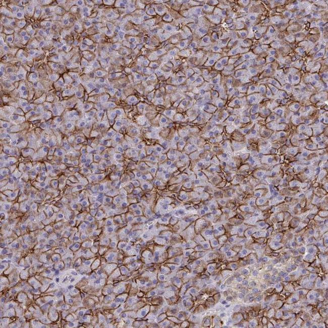 - Immunohistochemical staining of OR4X2 in human liver cancer tissue. Samples were probed using an OR4X2 Polyclonal Antibody (Product # PA5-63826).