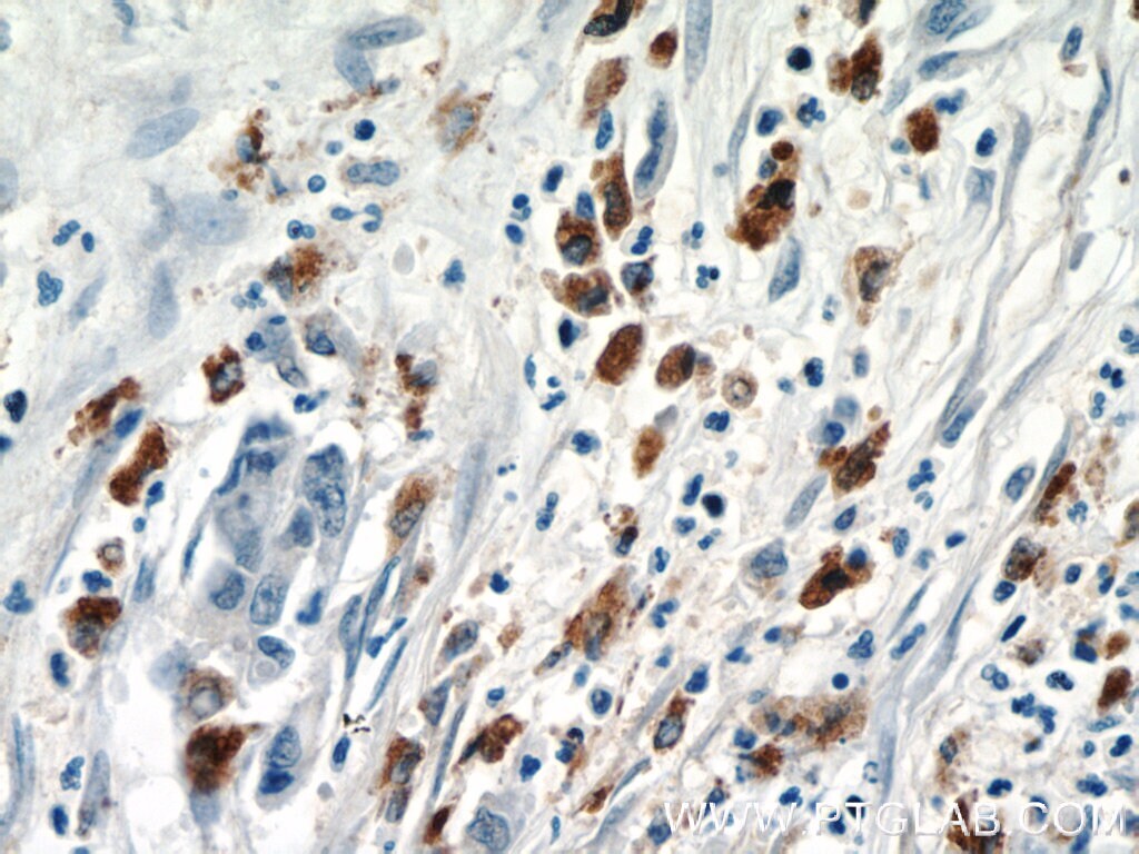 - Immunohistochemistry of paraffin-embedded human lung cancer using 15981-1-AP (ISG15 antibody) at dilution of 1:50 (under 40x lens).