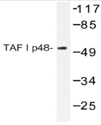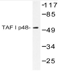 - Western blot (WB) analyzes of TAF I p48 antibody (Cat.-No.: AP20445PU-N) in extracts from HeLa cells.