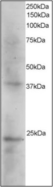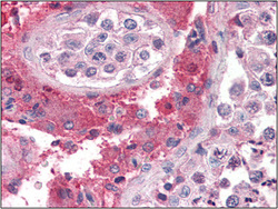 - Antibody staining (2 ug/ml) of Human Kidney extracts (RIPA buffer, 35 ug total protein per lane). Primary incubated for 1 hour. Detected by western blot using chemiluminescence.