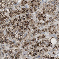 - Immunohistochemical staining of human adrenal gland with C5orf4 polyclonal antibody (Cat # PAB20766) shows strong cytoplasmic positivity in granular pattern in cortical cells at 1:50-1:200 dilution.