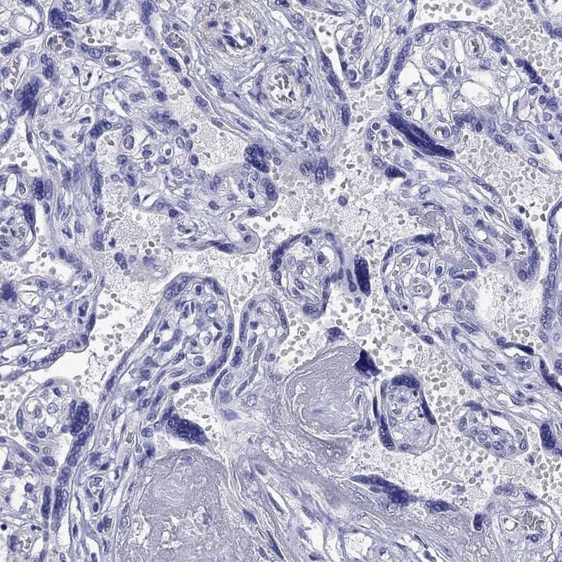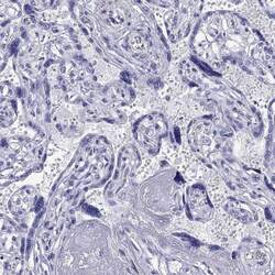 - Immunohistochemical analysis of KIAA2012 in human placenta using KIAA2012 Polyclonal Antibody (Product # PA5-140350) shows low expression as expected.