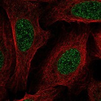 - Immunofluorescent staining of human cell line U-2 OS shows localization to nucleoplasm.
