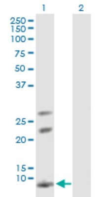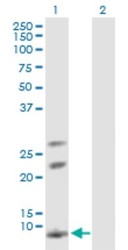 - Western Blot: AKR1CL1 Antibody [H00340811-B01P] - Analysis of AKR1CL1 expression in transfected 293T cell line by AKR1CL1 polyclonal antibody. Lane 1: AKR1CL1 transfected lysate(14.19 KDa). Lane 2: Non-transfected lysate.