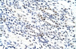 - Immunohistochemistry-Paraffin: NOL4 Antibody [NBP1-57244] - Human kidney Tissue, antibody concentration 4-8ug/ml. Cells with positive label: renal corpuscle cells (indicated with arrows) 400X magnification.
