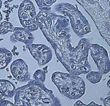 - Negative control stain of human placenta (from sea level) using mouse IgG at 1 : 100. 4uM paraffin-embedded section.