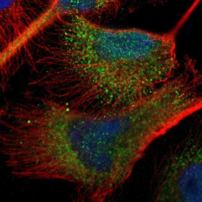 - Immunofluorescent staining of ZNF155 in human cell line A-431 using a ZNF155 Polyclonal Antibody (Product # PA5-51865) shows localization to nucleoplasm and cytosol.