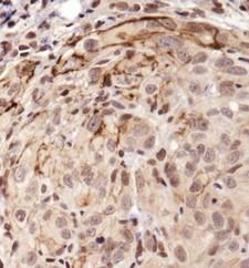 - Immunohistochemistry: Notch1 Antibody - IHC of Notch1 in human kidney carcinoma using DAB with hematoxylin counterstain. This image was taken for the unconjugated form of this product. Other forms have not been tested.