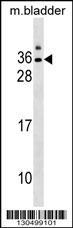 - GJE1 Antibody (C-term) (Cat. #AP18916b) western blot analysis in mouse bladder tissue lysates (35ug/lane).This demonstrates the GJE1 antibody detected the GJE1 protein (arrow).