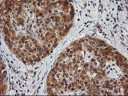 - IHC of paraffin-embedded Adenocarcinoma of Human breast tissue using anti-MAPRE2 mouse monoclonal antibody.