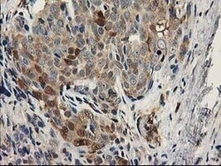 - Immunohistochemical staining of paraffin-embedded Carcinoma of Human lung tissue using anti-EB2 (MAPRE2) mouse monoclonal antibody. (Heat-induced epitope retrieval by 10mM citric buffer, pH6.0, 100°C for 10min, TA502859)