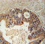 - DYRK1A Antibody immunohistochemistry of formalin-fixed and paraffin-embedded human prostate carcinoma followed by peroxidase-conjugated secondary antibody and DAB staining.