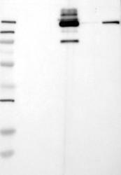 - Western blot analysis of antibody specificity using a routine panel composed of IgG/HSA-depleted human plasma and protein lysates from selected human tissues and cell lines.