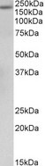- A2M antibody (0.5 ug/ml) staining of Human Albumin-depleted Serum lysate (35 ug protein in RIPA buffer). Primary incubation was 1 hour. Detected by chemiluminescence.