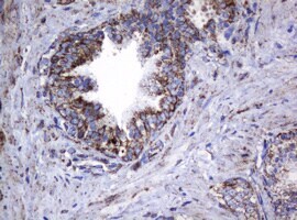 - Immunohistochemical staining of paraffin-embedded Carcinoma of Human prostate tissue using anti-Hsp60 (HSPD1) mouse monoclonal antibody. (Heat-induced epitope retrieval by 10mM citric buffer, pH6.0, 120°C for 3min, TA800772)