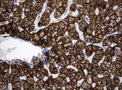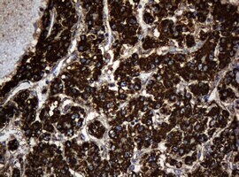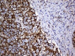 - Immunohistochemical staining of paraffin-embedded Carcinoma of Human liver tissue using anti-Hsp60 (HSPD1) mouse monoclonal antibody. (Heat-induced epitope retrieval by 10mM citric buffer, pH6.0, 120°C for 3min, TA800772)